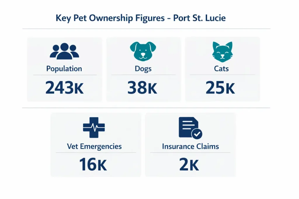 *These figures are based on national pet ownership trends and public population data. Using standard benchmarks, they provide a realistic estimate of pet ownership and insurance-related activity inPort St. Lucie.